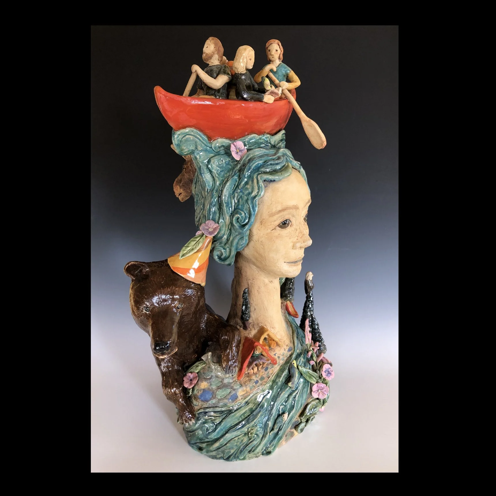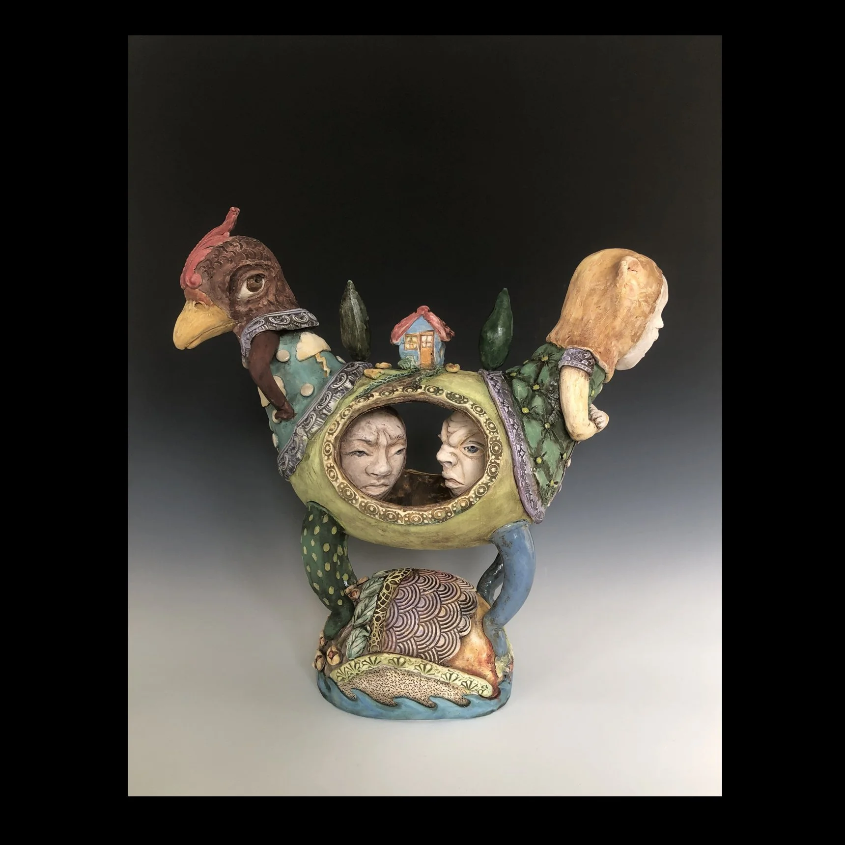 Teresa makes figurative ceramic sculpture, impractical toys and kinetic art. Primarily a handbuilder, she loves the process of bringing clay to life and adorning the surfaces with pattern, colour and texture. Referencing mythology and folklore Teresa tells personal stories. She is interested in the push and pull of emotions and their power over actions both creative and destructive. When working, Teresa aims to create something extraordinary that evokes emotion and a connection with others.