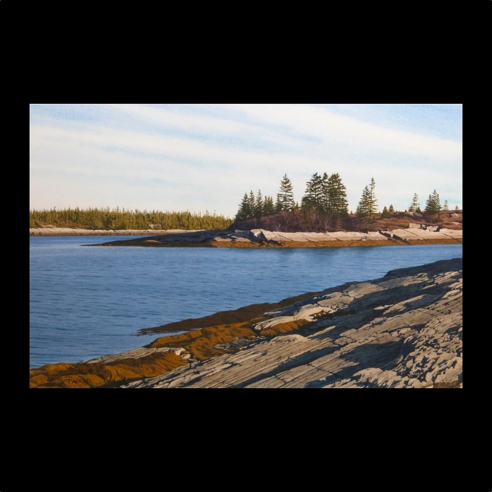 Tom Ward’s background in geology resonates throughout his watercolour landscapes. His paintings are about light and mood within carefully thought out compositions, beautifully rendered in high realism.